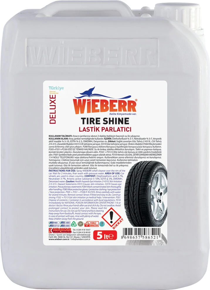 Wieberr Deluxe je visokokvalitetno sredstvo za negu i sjaj automobilskih guma, namenjeno profesionalnoj i ličnoj upotrebi. Pored guma, proizvod je pogodan i za spoljne plastične površine, kojima vraća prirodan izgled i dubinu boje.
